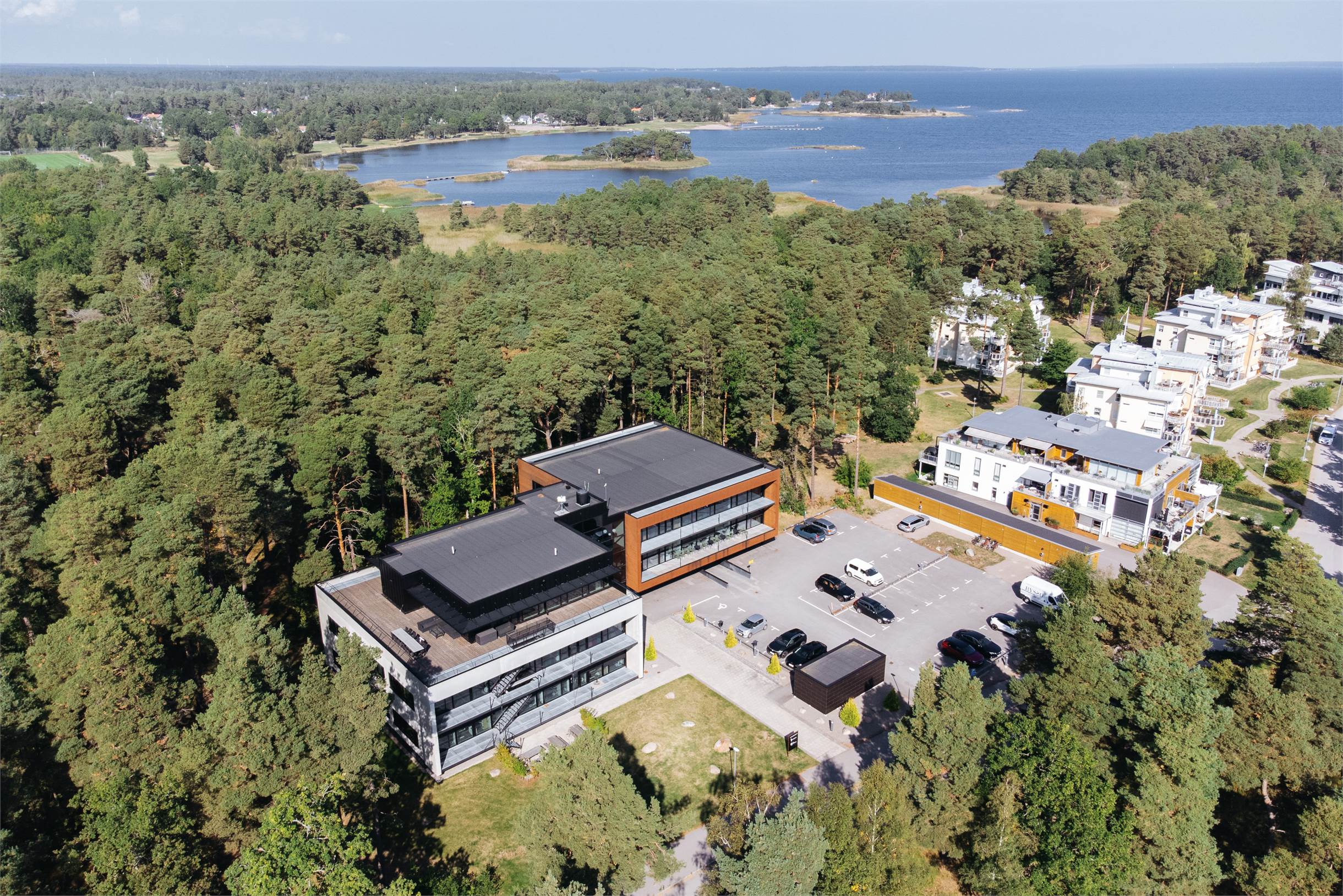 Det naturnära läget vid vattnet bjuder på möjligheten att ta ett dopp på lunchen, medan den närliggande skogen ger utrymme för avkopplande promenader eller promenadmöten. Smidig parkering gör vardagen enkel för både personal och gäster.