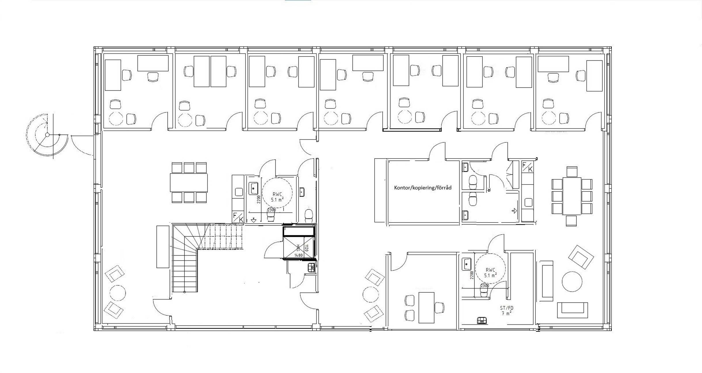 I utmärkt läge på Sylveniusgatan 10 återfinns denna nybyggda kontorsbyggnad som genomgående erbjuder generöst ljusinsläpp från stora fönsterpartier (självklart är kontoret utrustat med kyla för årets varmare dagar), moderna och stilrena ytskikt samt tillgång till gemensam konferenssal och bastu med utsikt över Uppsala domkyrka. På andra våningen finns möjlighet att förhyra en välplanerad och rumsindelad kontorsyta om totalt 300 kvm. Möjlighet finns även att hyra delar av våningsplanet där modularean utgör 190 respektive 110 kvm. Oavsett om ni önskar hyra hela eller delar av våningsplanet erbjuds ett flertal kontorsrum i god storlek och med rogivande utsikt mot grönyta, stilrena RWC och WC/dusch samt personalyta med pentry utrustat med kyl/frys samt diskmaskin.