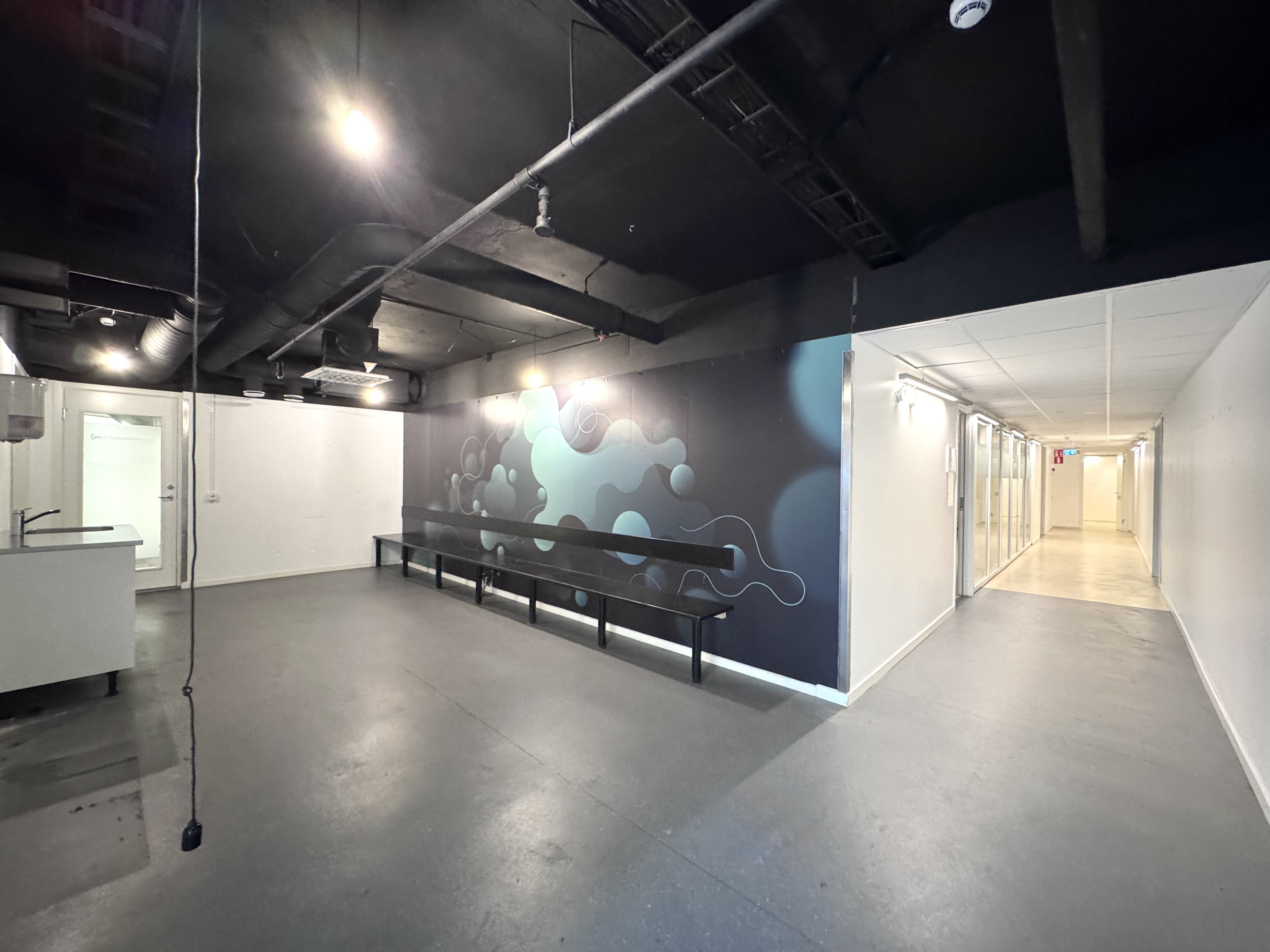 Lokalen erbjuder en flexibela mljligheter till anpassning. Idag är det ett flertal stora öppna salar blandat med mindre rum. Flera WC-grupper och kök.