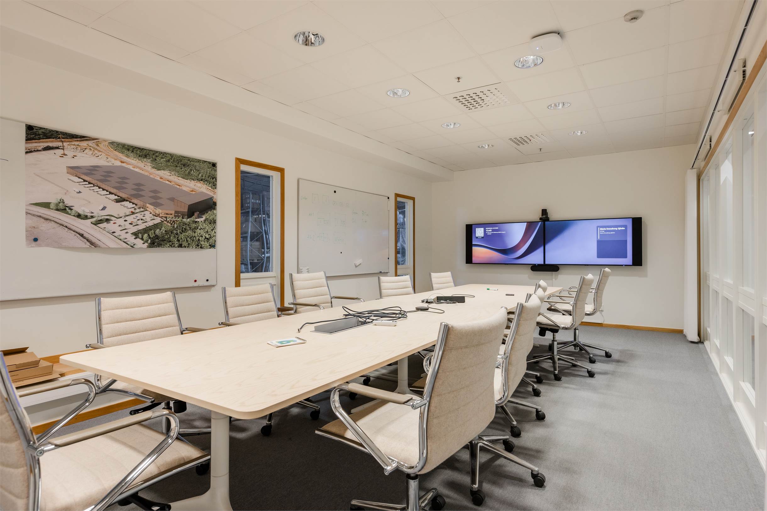 Kontorsdelen är ljus, representativ och välplanerad, med hög standard på materialval och trivsam arbetsmiljö. Här finns mötesrum, pentryn och sociala ytor som skapar en attraktiv helhet för företag som vill kombinera effektiva lagerytor med funktionella kontor.