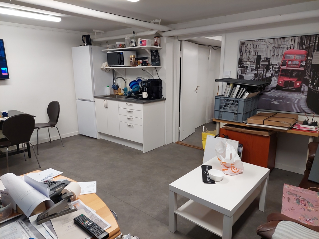 Lokalen innehåller 2 större rum varav ett med pentry, samt en mindre WC.