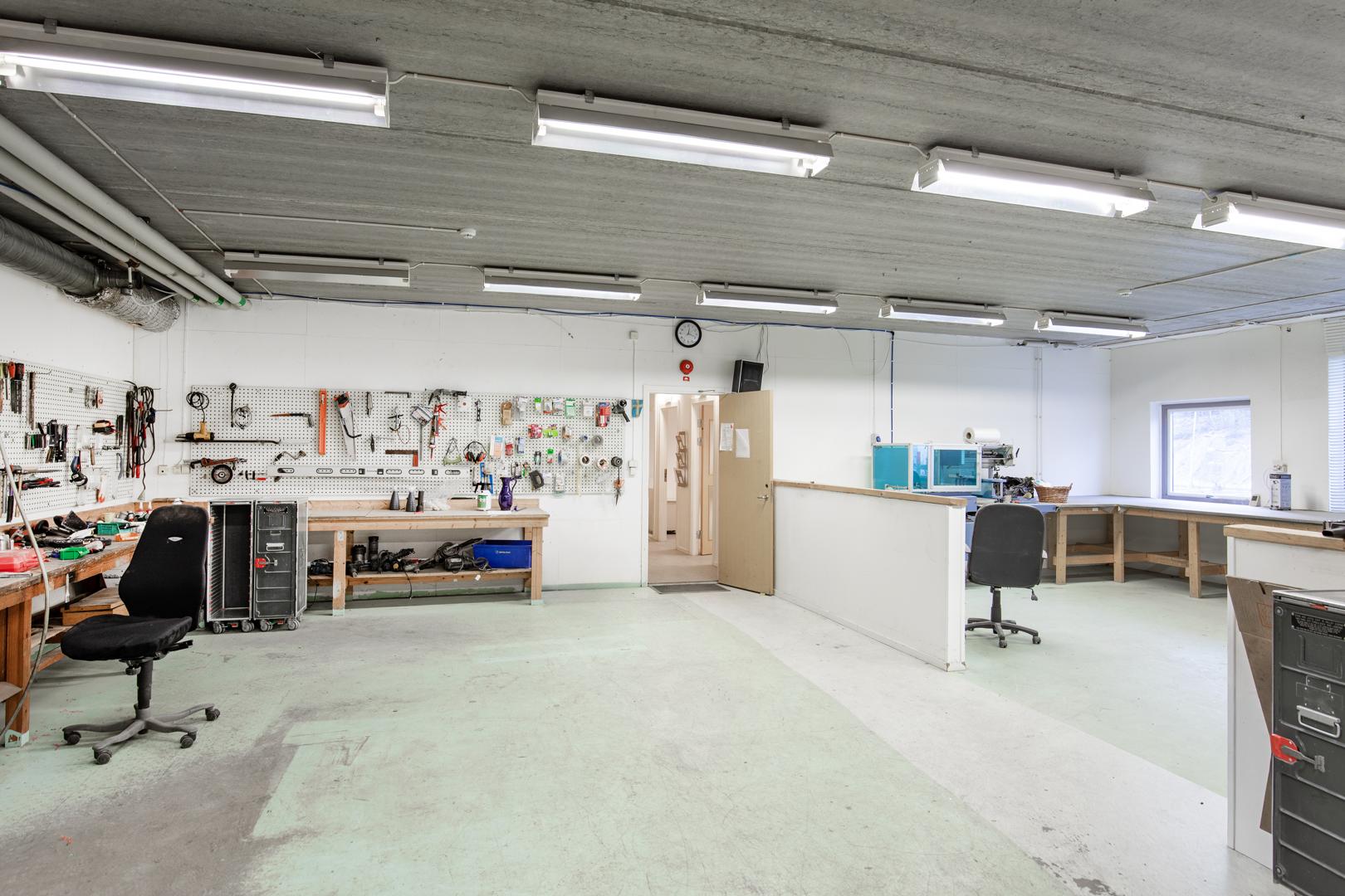 På markplan finns 250 kvm som är perfekt för en effektiv verkstadsplats. Ytterligare 330 kvm höglagerutrymme, med takhöjder upp till 11 meter, gör att ni kan maximera lagerkapaciteten och bekvämt lagra upp till 490 pallar.