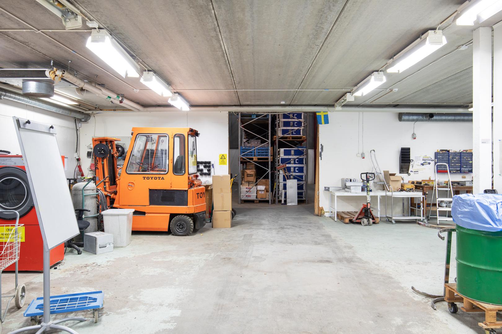 På första och andra våningen erbjuds ytterligare 500 kvm, som för närvarande används som låglager. Med vision och rätt planering kan dessa ytor omvandlas till inspirerande kontorslandskap eller produktionsutrymmen som möter era behov. Fastigheten är dessutom förberedd för hiss mellan våningarna.