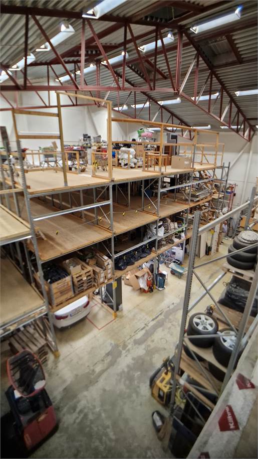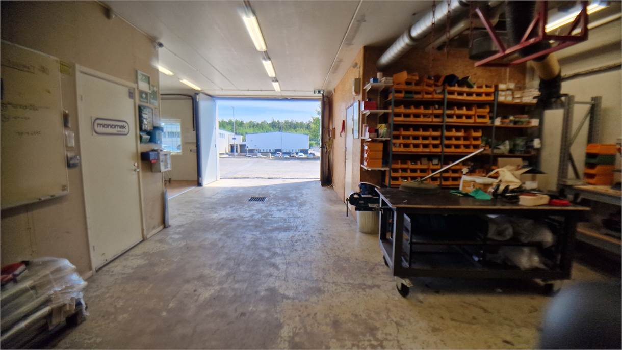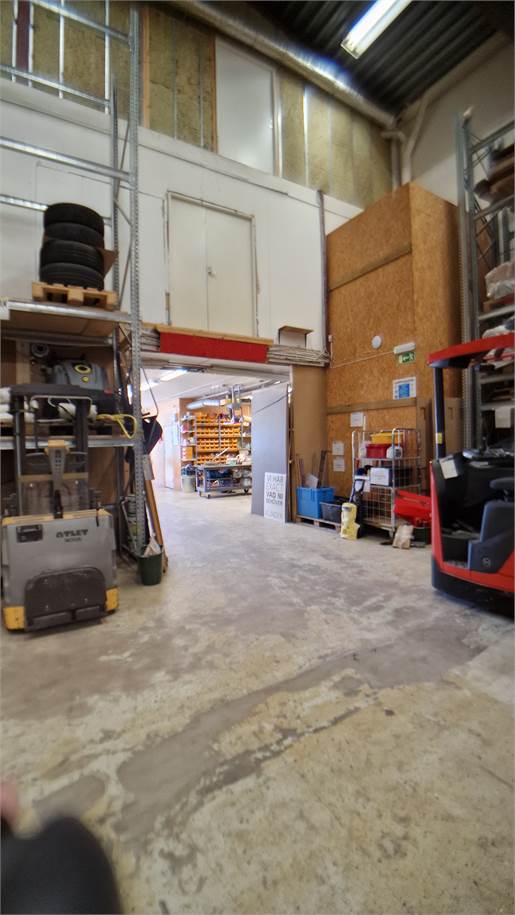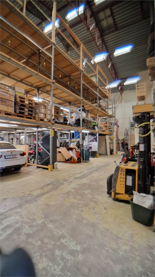 Höglager om ca. 300 kvm med markport för egen inlastning, takhöjd ca. 11-13 meter. In-/utlastning förråd med takhöjd ca. 3,2 meter. Lagerkontor med 2 st kontorsrum, pentry och matplats + WC. Finns behov av ytterligare kontorsyta kan det erbjudas i samma byggnad på plan 2.