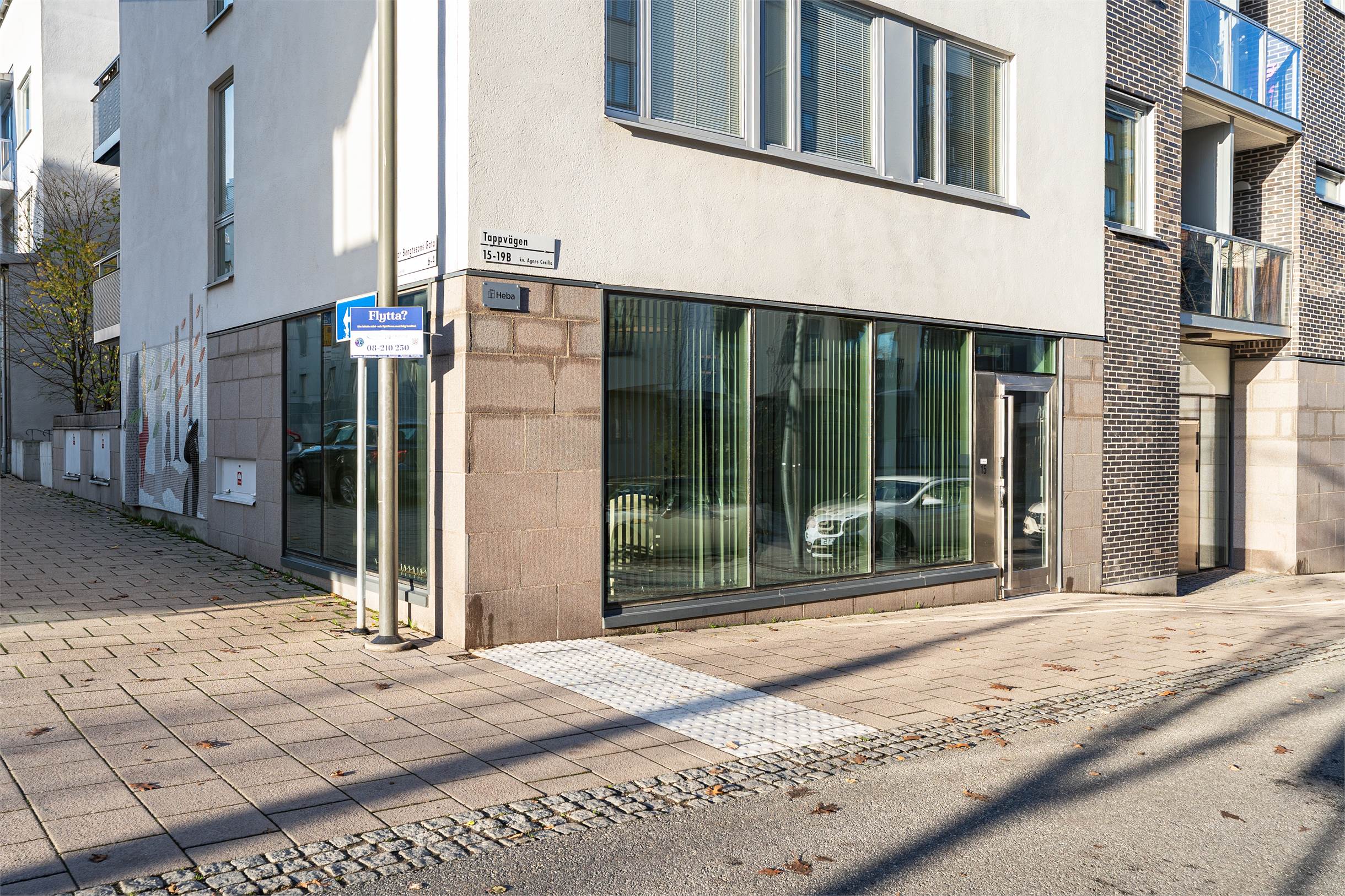Lokalen har ett mycket bra skyltläge tack vare sina stora hörnfönster mot två gator. Här syns man väl för både förbipasserande gående, cyklister och biltrafik.
