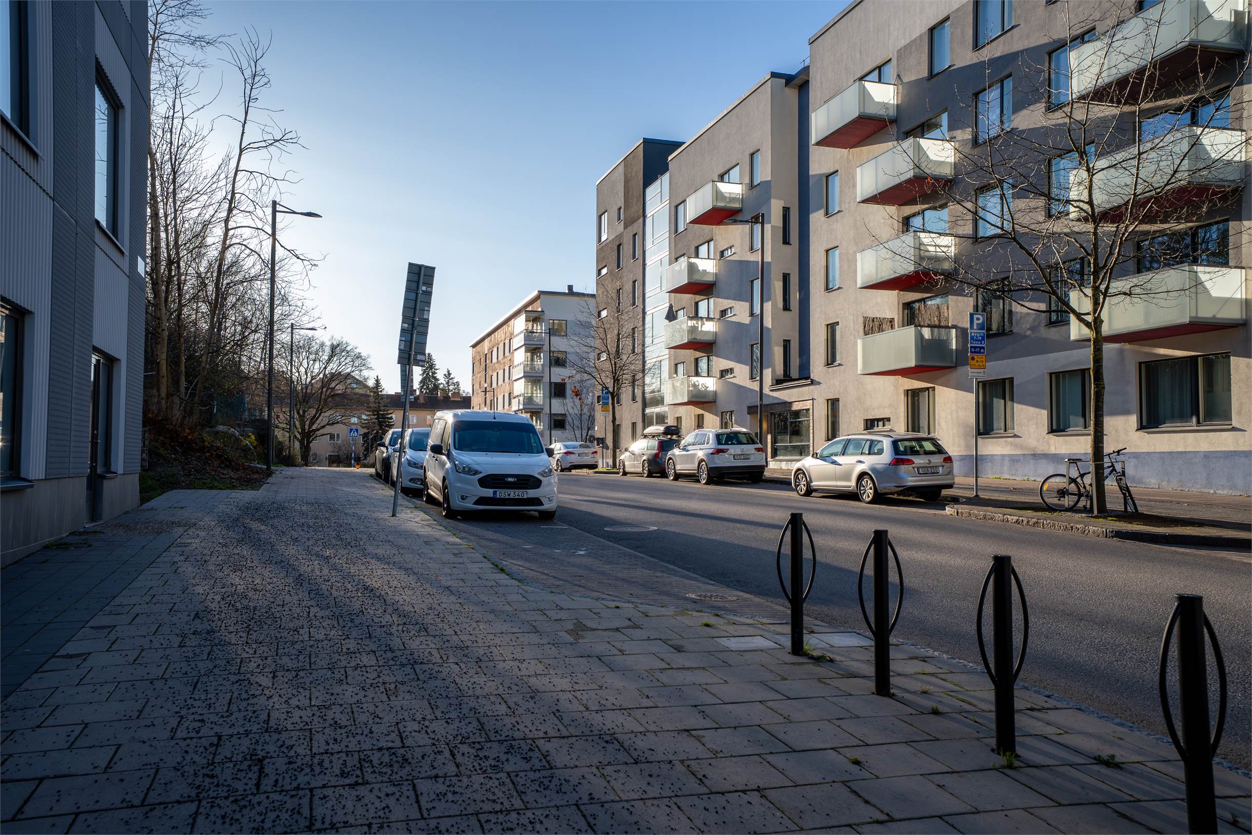 Gott om parkeringsplatser längs gatan samt möjlighet till boendeparkering i området. Garage finns i närliggande fastigheter via separata avtal.
