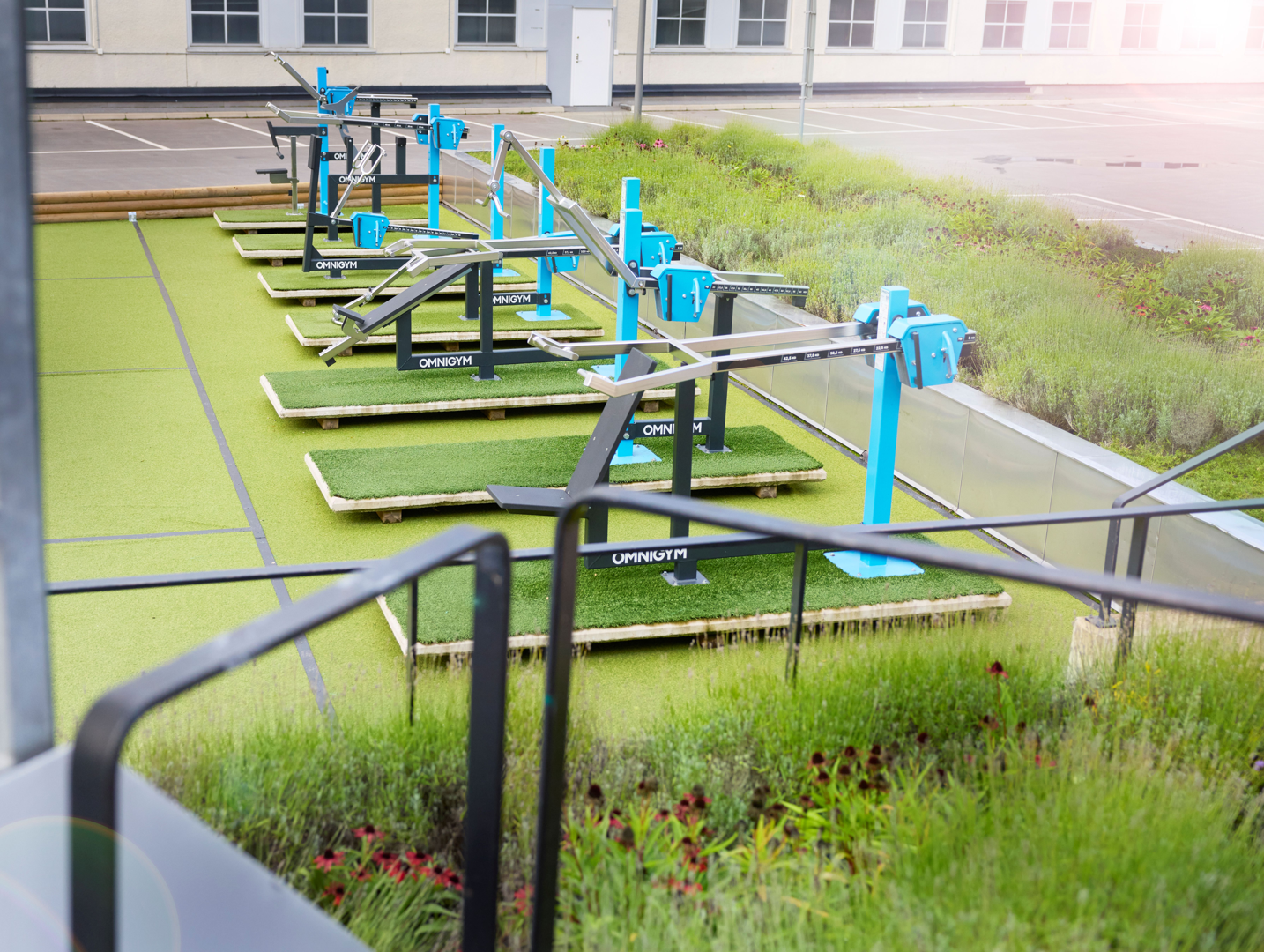 Utanför fastigheten finns ett utegym byggt 2024 och en workoutyta.