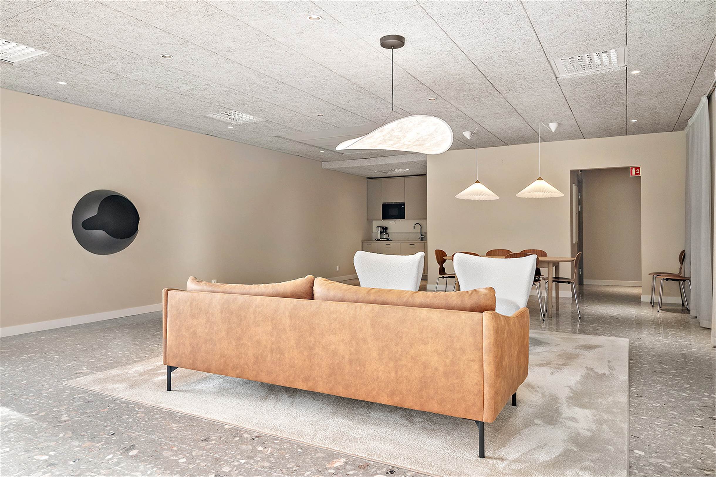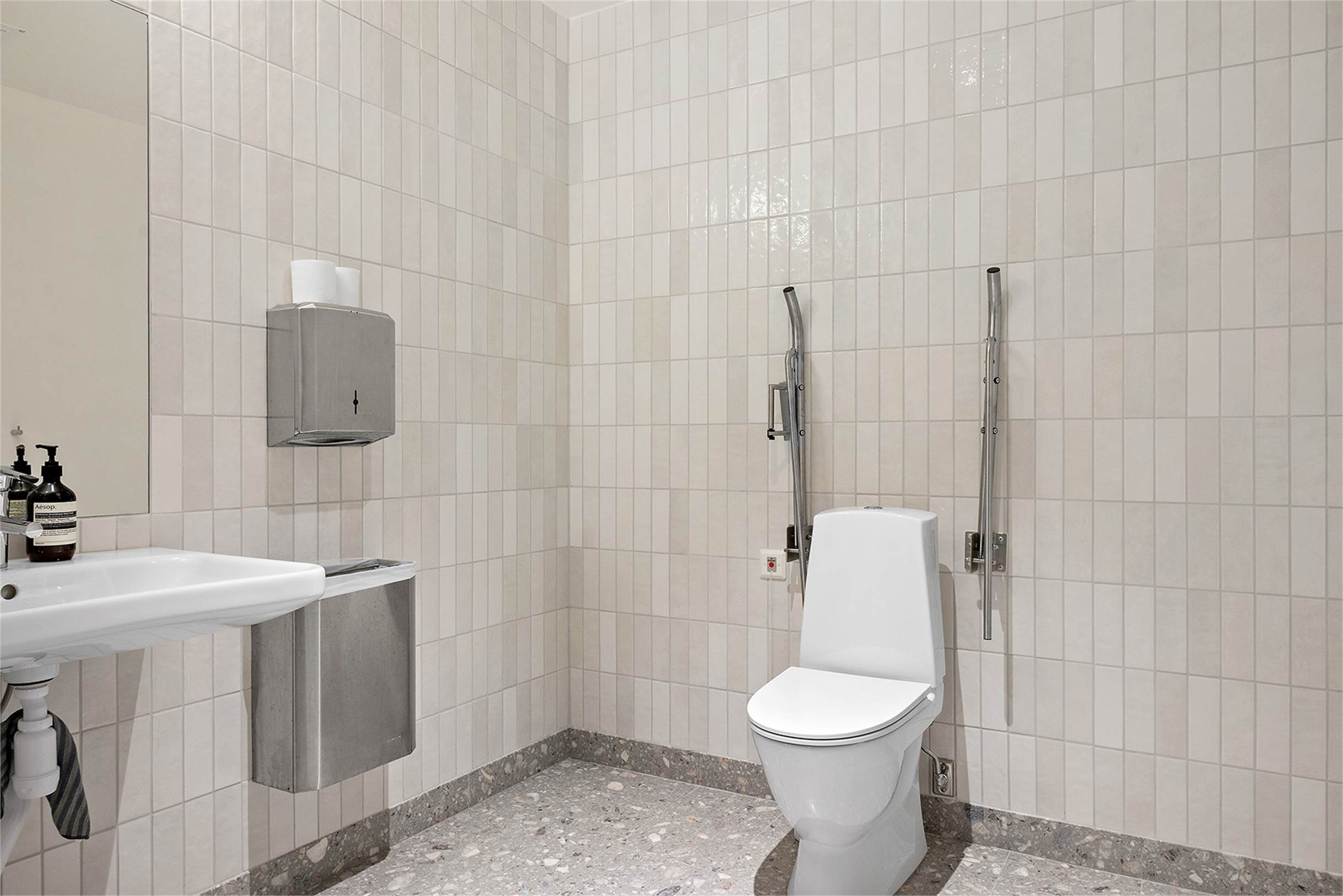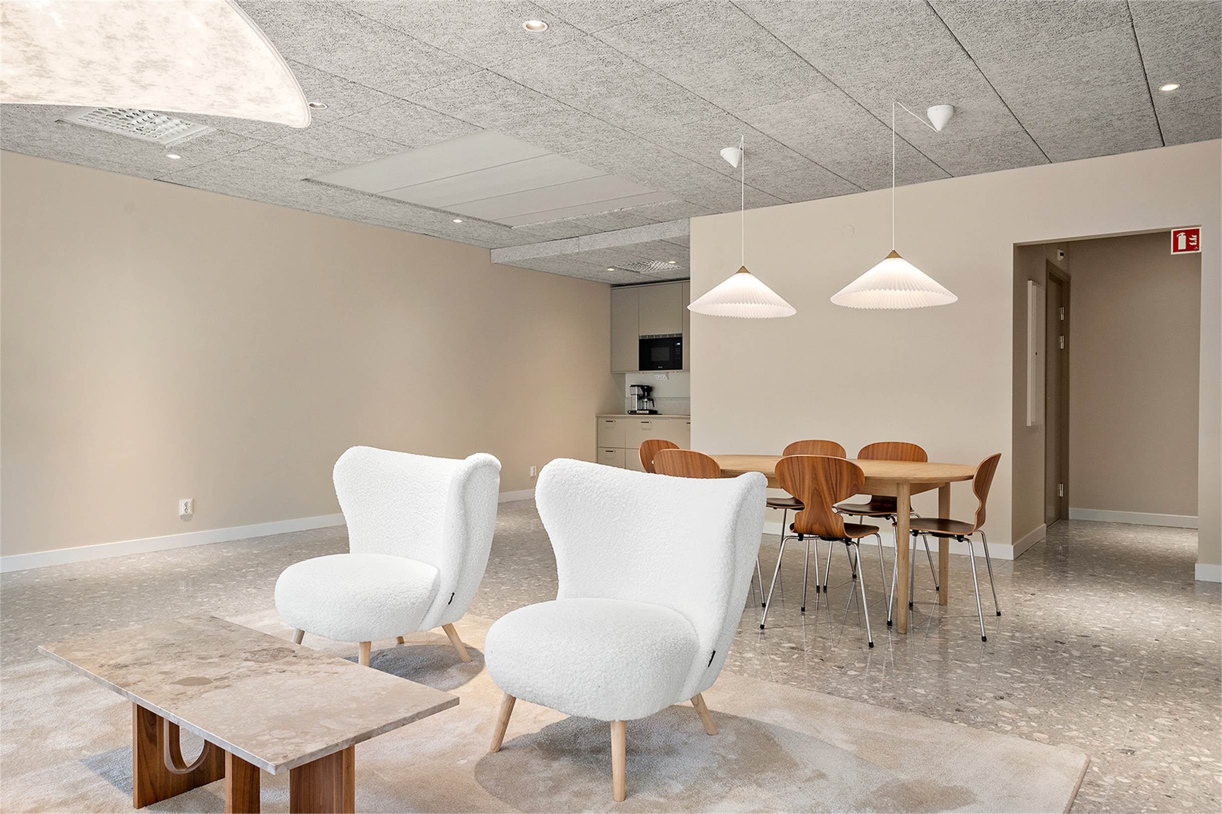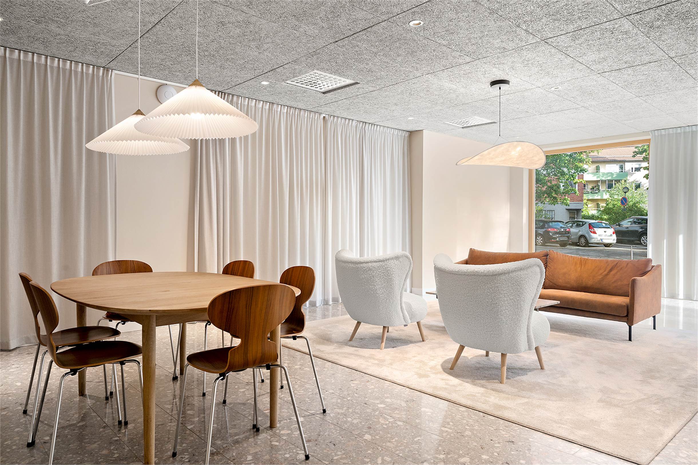 Lokalen kan hyras ut med de möbler som finns på bilderna inkluderade om man önskar det. På väggen sitter en vägghängd etanolkamin som även kan hänga kvar. Smidig inpassering via ramp eller trappa till dörren samt automatisk dörröppnare.