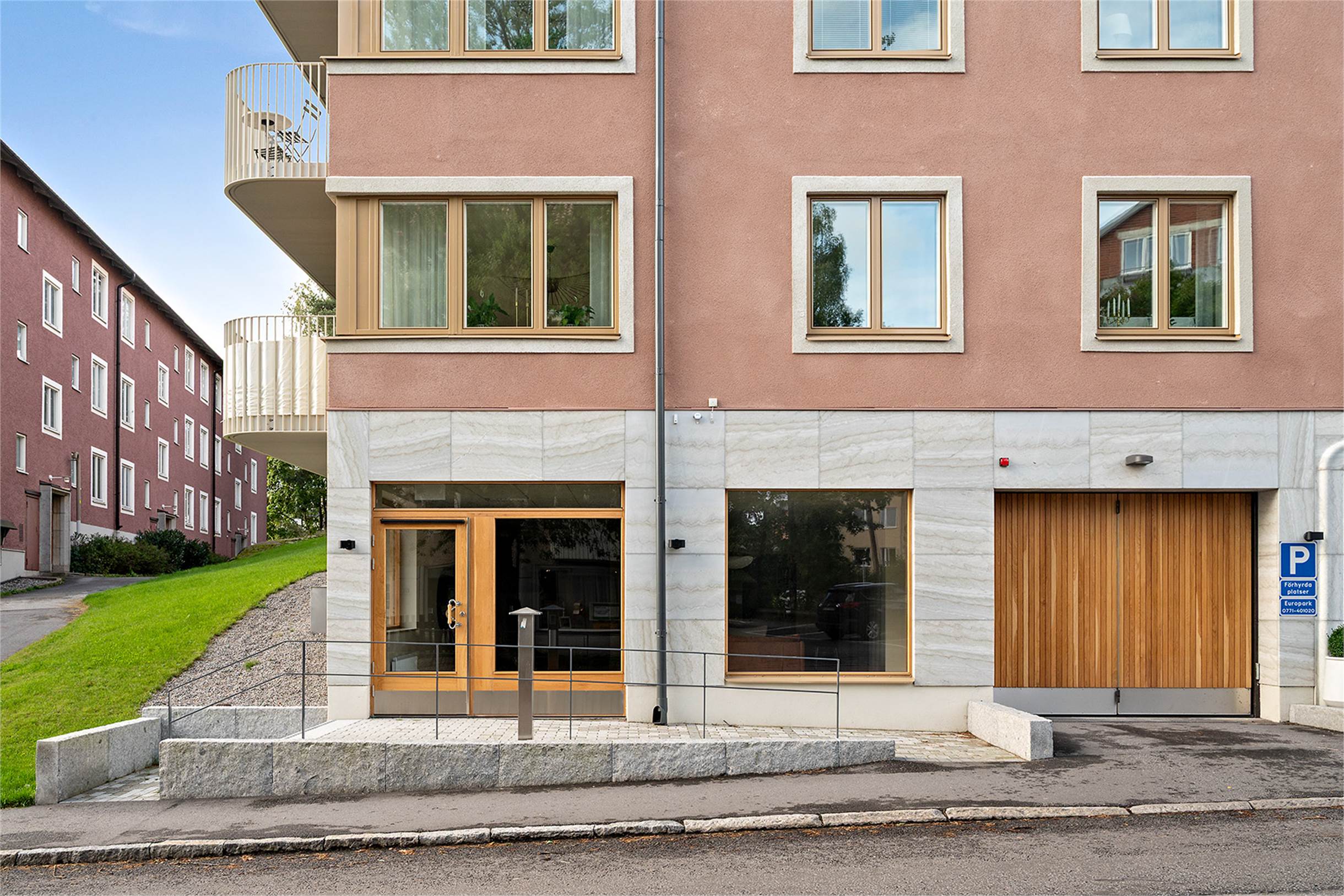 Parkeringsmöjligheter på närliggande gator samt möjlighet att hyra garageplats i fastighetens garage.