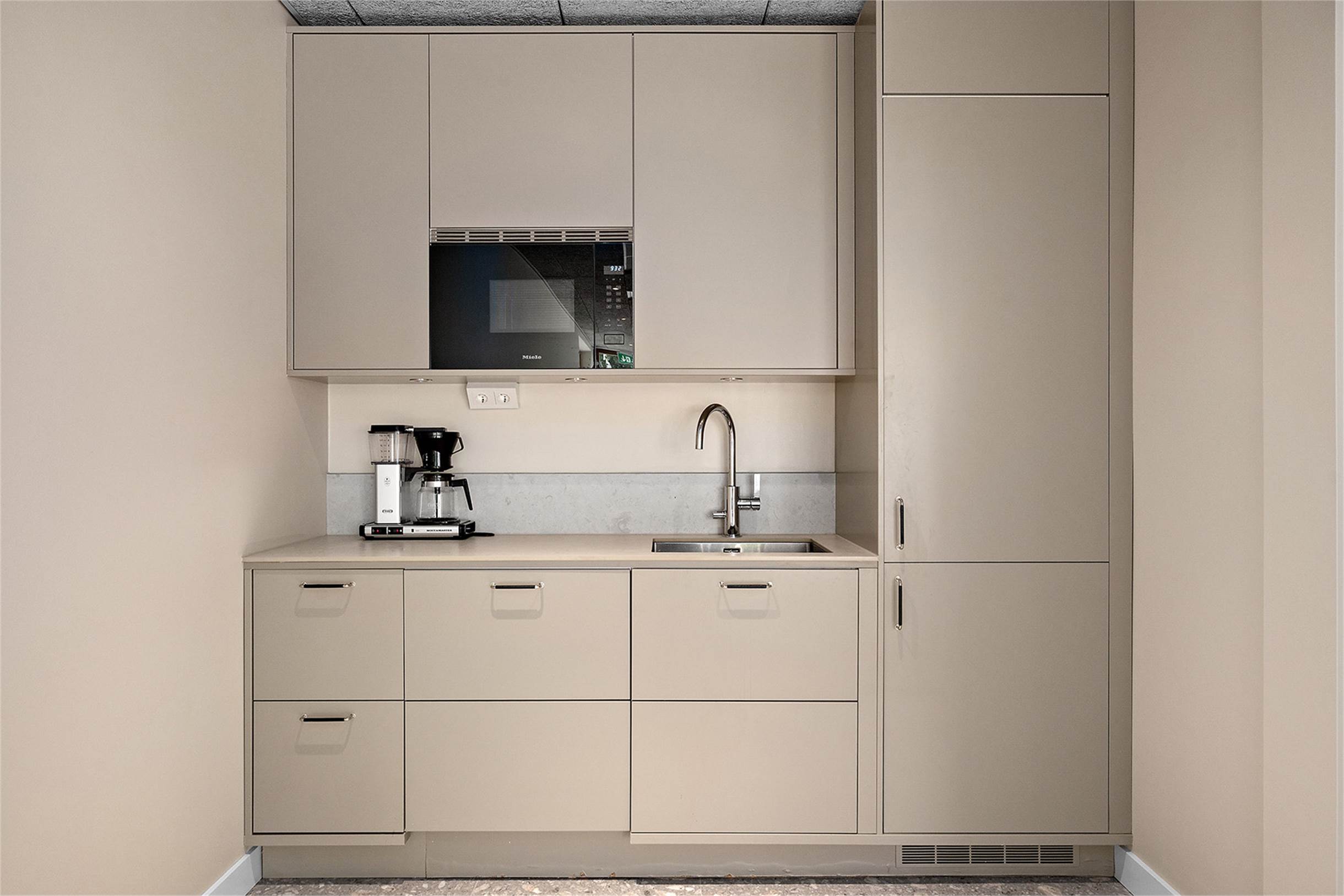 Lokalen utgörs av en öppen rymlig yta med stora fönster i två väderstreck ut mot gatan. Längst in i rummet finns ett mycket fint pentry med stort kylskåp med frys, integrerad micro, diskho och diskmaskin. Gott om skåp till förvaring i pentryt. i det inre rummet finns en garderob/städskåp och den stora tillgänglighetsanpassade toaletten.