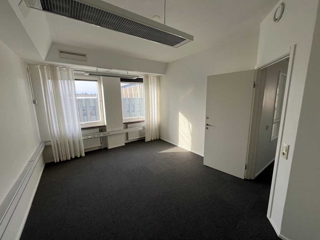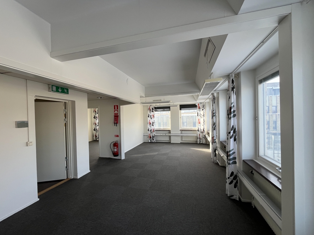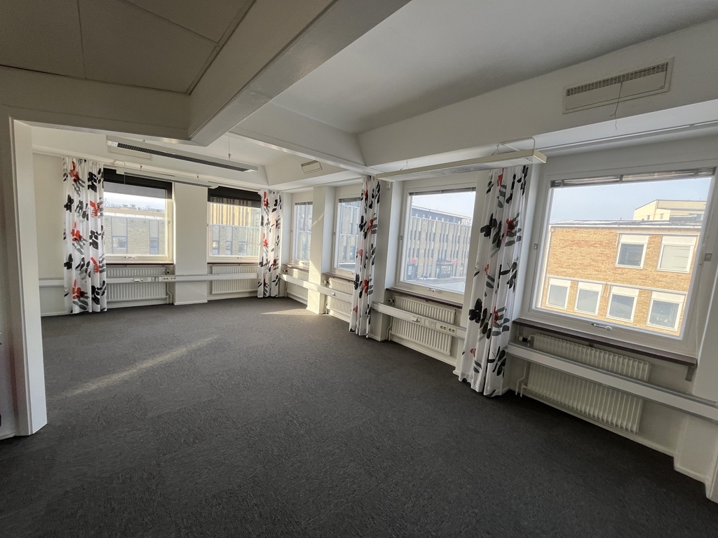 En ljus och trivsam kontorslokal belägen högst upp i fastigheten på plan 3. De stora glaspartierna längs två väggar ger lokalen ett härligt ljusflöde och en luftig känsla. För varmare dagar finns både markiser och kyla som säkerställer ett behagligt inomhusklimat.
