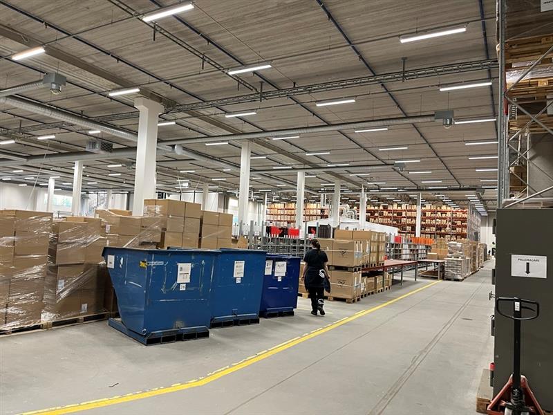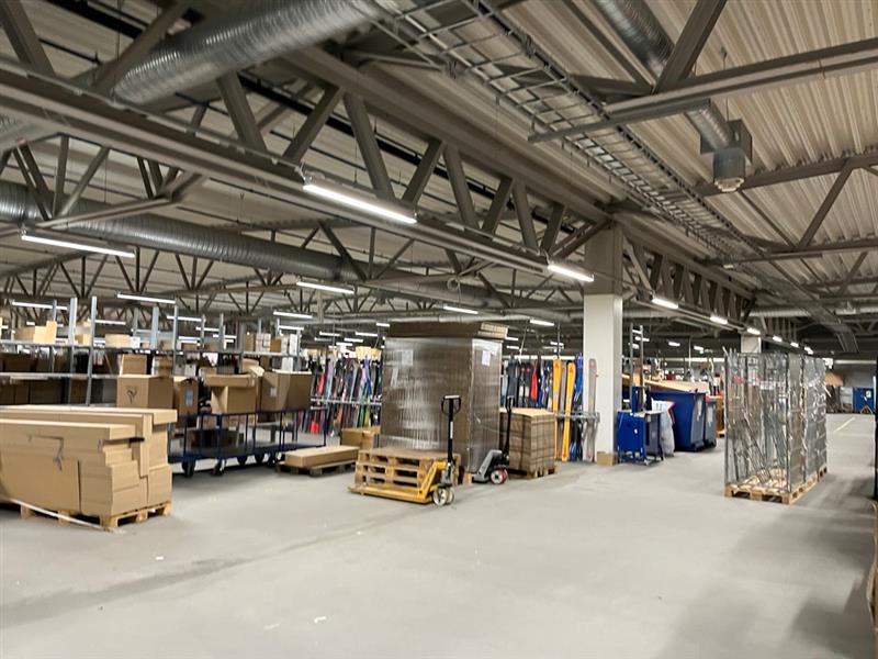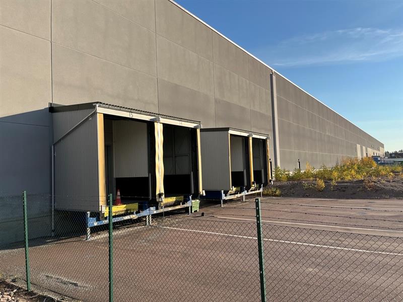 Rymlig och välutrustad lagerlokal med 10,7 meters takhöjd, entresolvåning på 3,1 meter och fyra portar för smidig in- och utlastning.