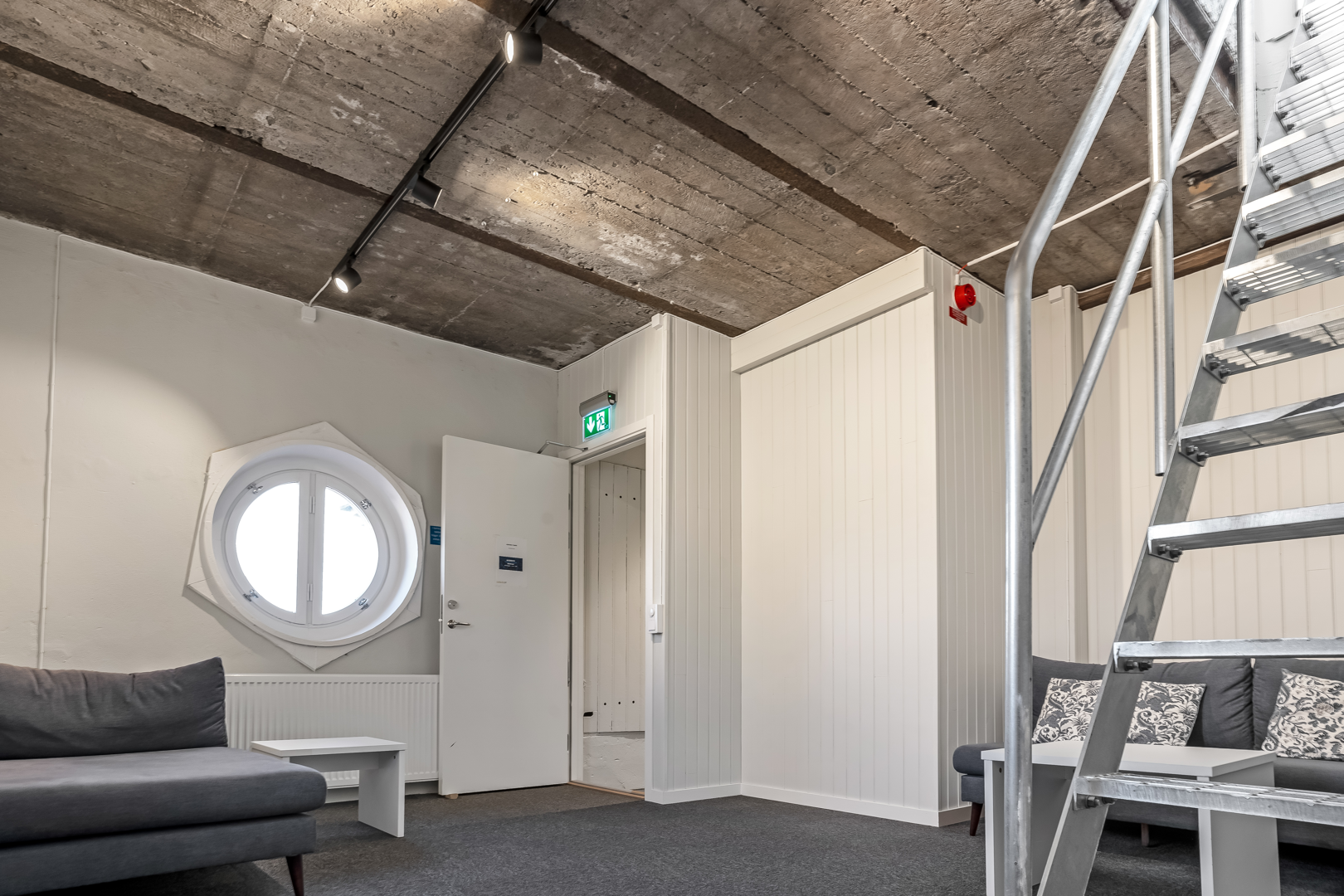 Lokalen sträcker sig över 2 plan med ett separat trapphus som förbinder planen.