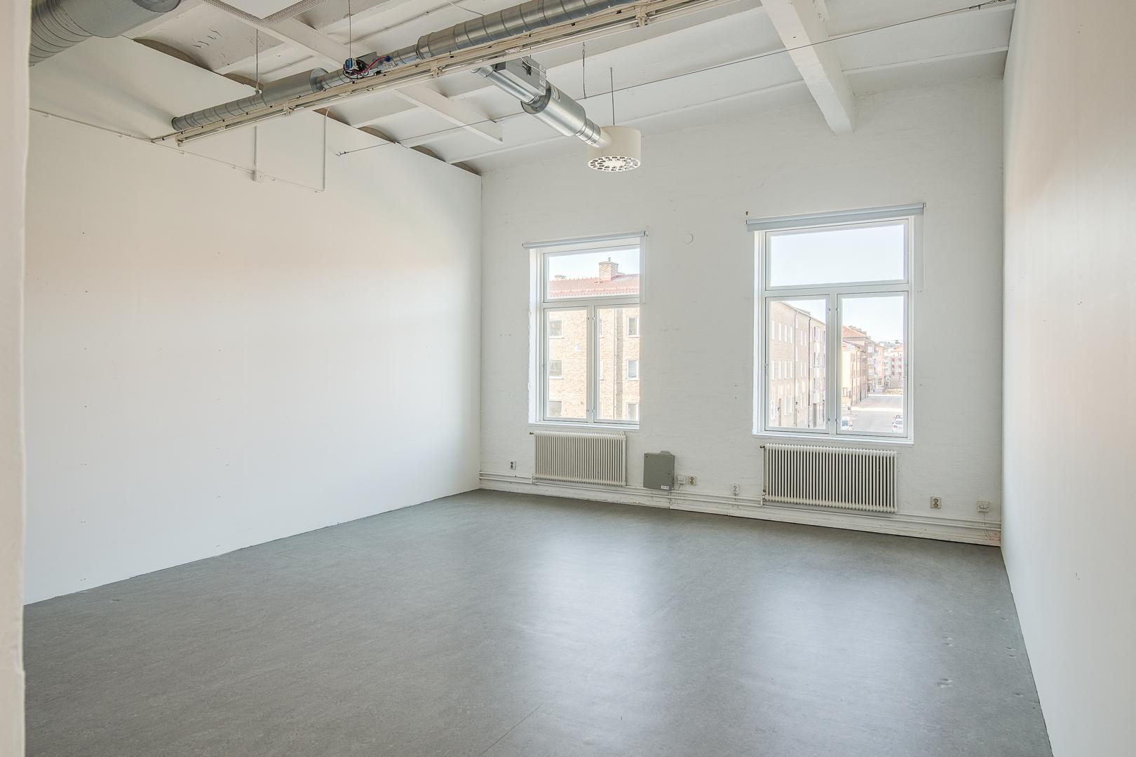 Nu finns möjligheten att förvärva ett industri kontor som tidigare använts som ateljé och lager. Här finns tillgång till 7st rum i varierande storlek. Lokalen är mycket flexibel och lämpad för såväl kreativa som praktiska verksamheter, till exempel studio verksamhet, produktion, industri kontor eller lagerhållning. Lokalen består av flera större rum med generös takhöjd och ett stort ljusinsläpp samt råyta av betong på väggar. Här finns ett relativt stort pentry med matplats och två toaletter.