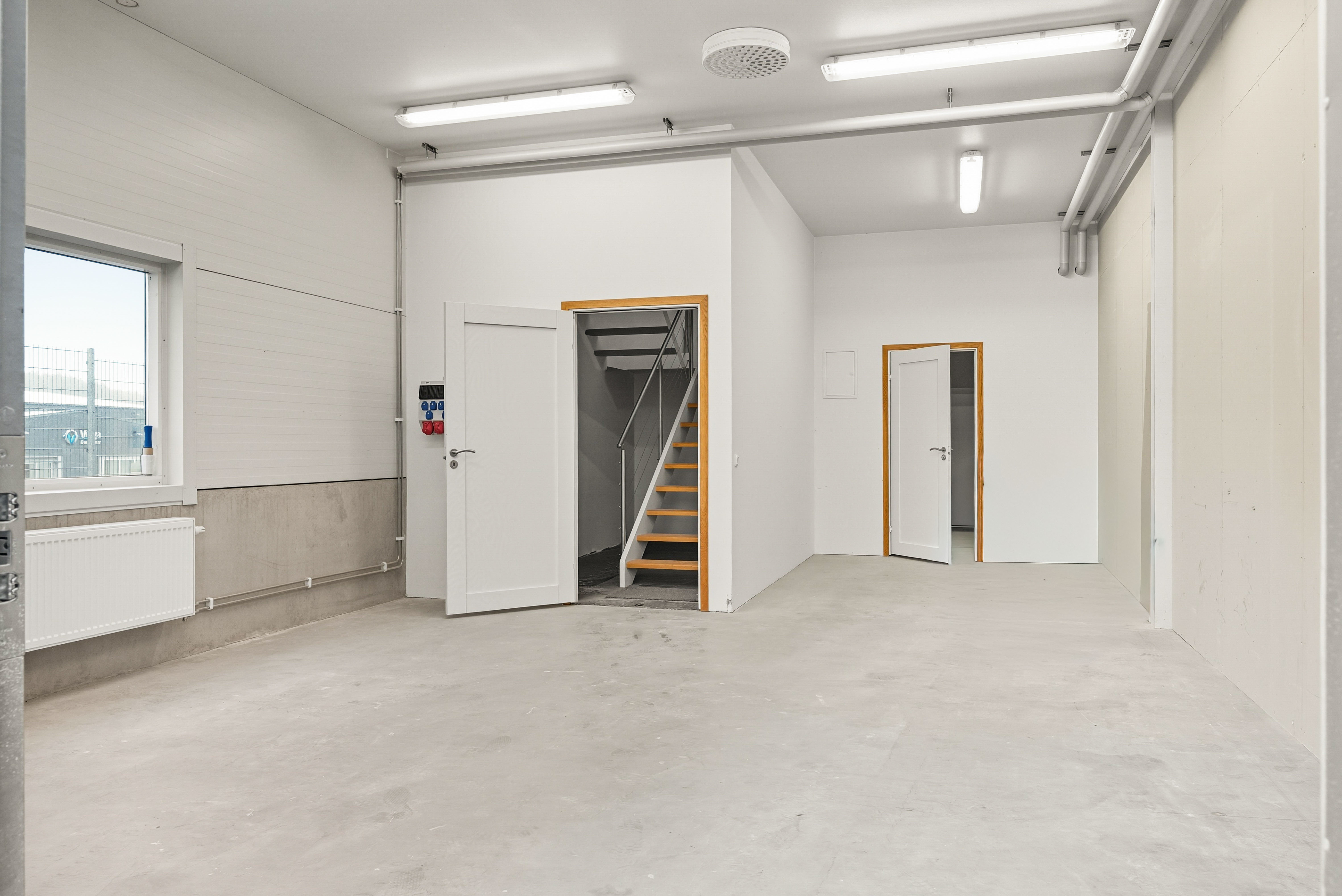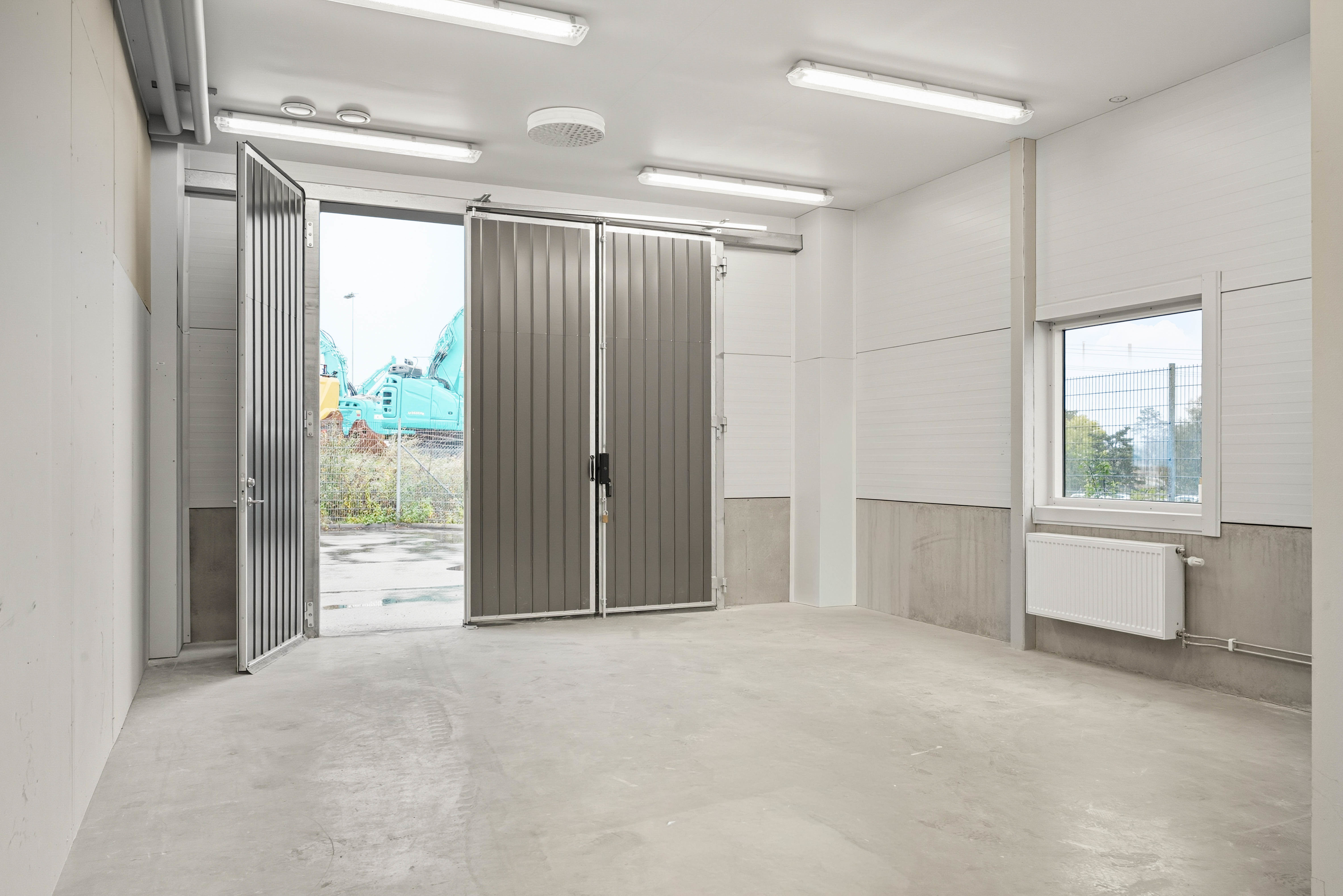 Lagerdelen erbjuder praktisk tillgång via markport 3*3 meter, vilket underlättar både in- och utlastning. Här finns gott om plats för förvaring, lättare produktion eller verkstadsverksamhet.