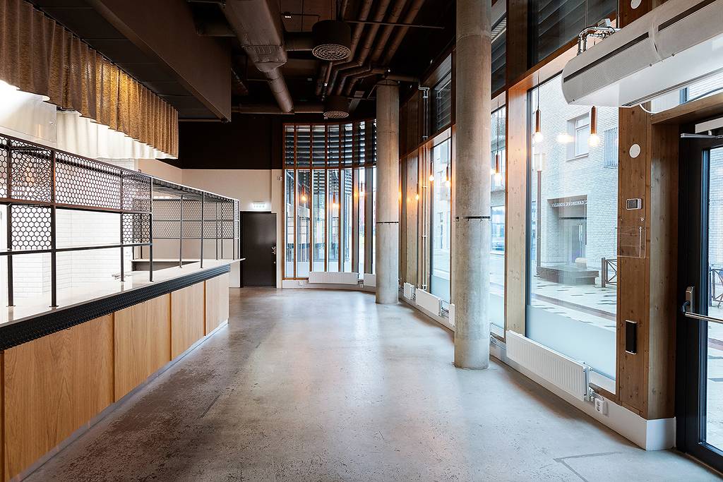 Lokalen har en industriell atomsför, stora fönsterpartier som släpper in mycket ljus, generös takhöjd, stilfull bardisk, inbjudande toaletter och ett rymligt kök.