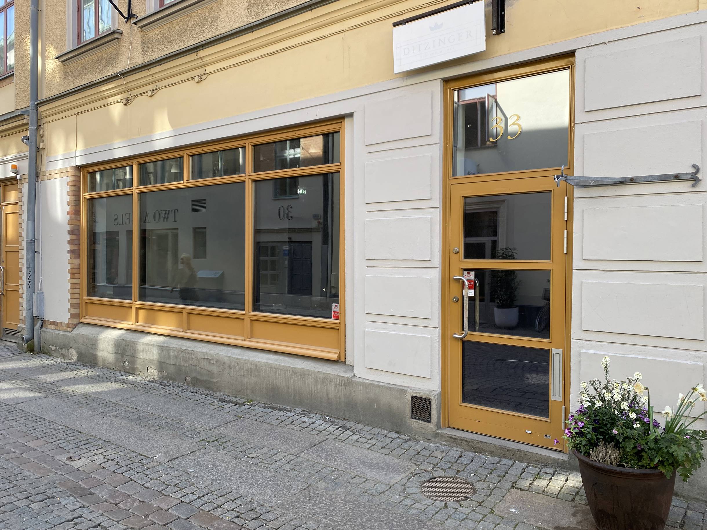 Lokalen på attraktiva Vallgatan 33 omfattar ca 108 kvm och har en genomtänkt och effektiv planlösning. Entré sker direkt från gatan via en glasad dörr med stora skyltfönster längs hela fasaden, vilket ger mycket god exponering mot gågatan och ett fint ljusinsläpp i lokalen.