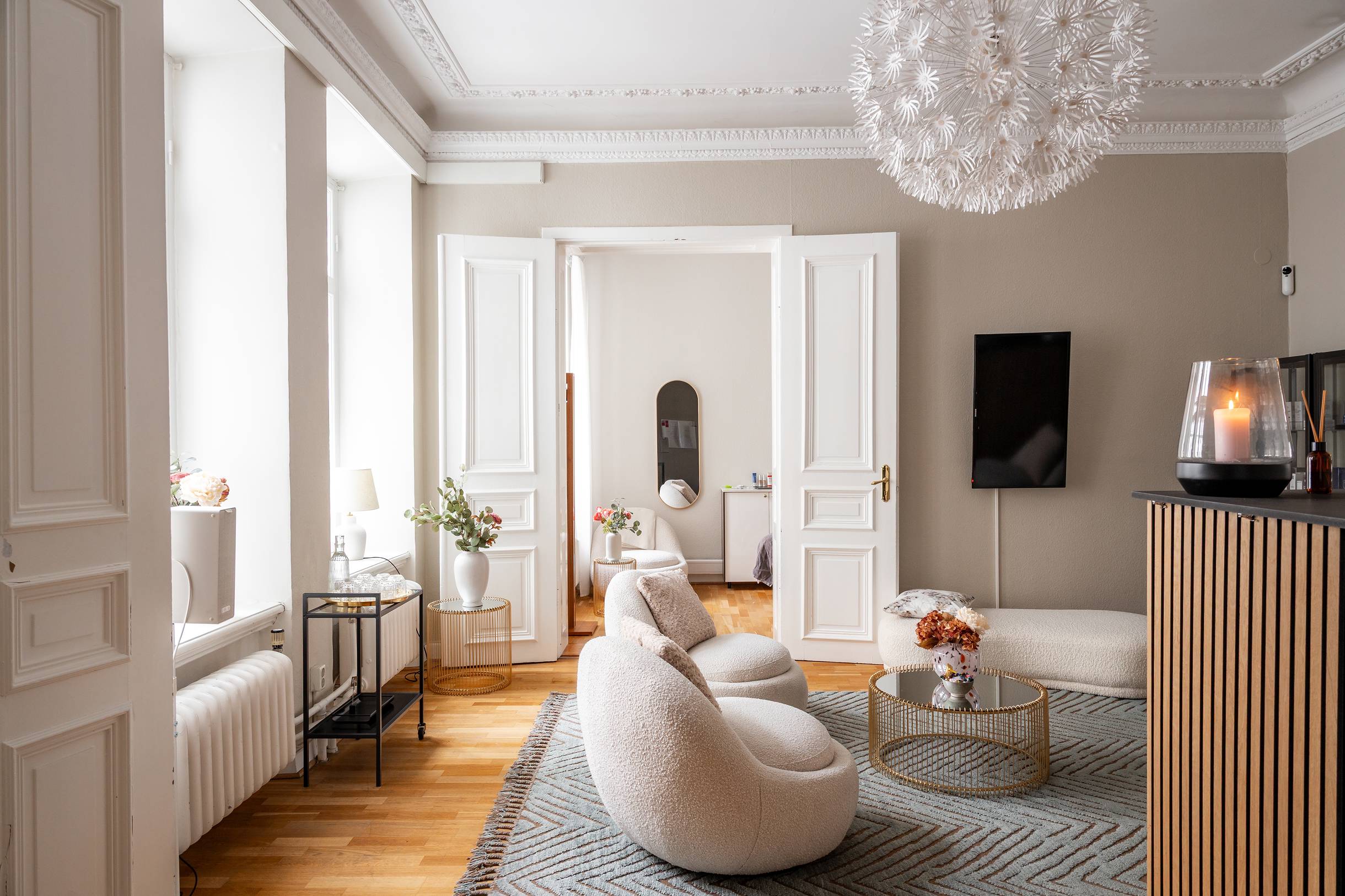 Lokalen präglas av högt i tak, stora fönsterpartier och vackra sekelskiftesdetaljer som skapar en ljus och trivsam atmosfär. Kombinationen av historisk charm och moderna ytor gör lokalen ideal.