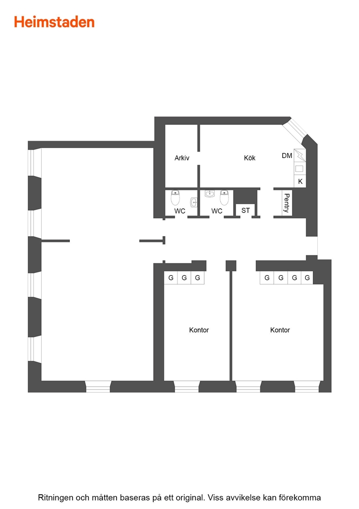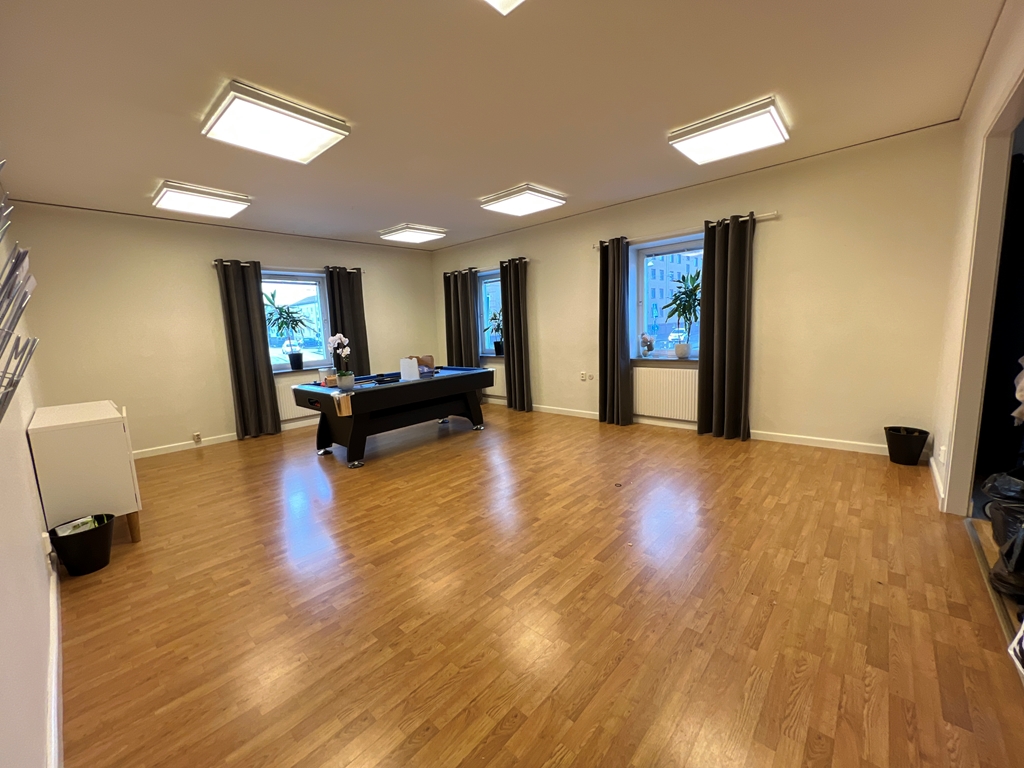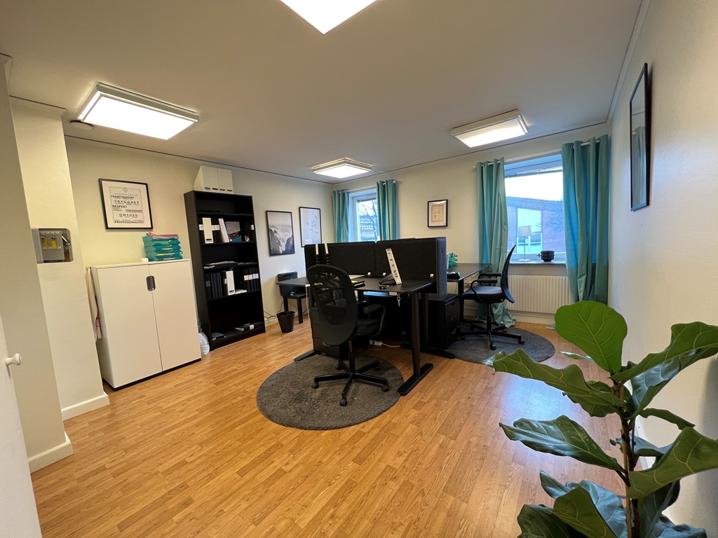 Kontorslokal med stora öppna ytor, men även två enskilda kontorsrum. Två toaletter.