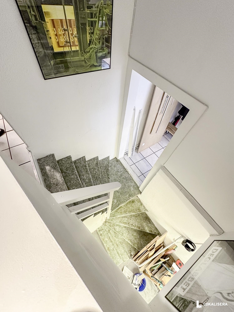 - En mindre verkstad-/lageryta en våning ner
