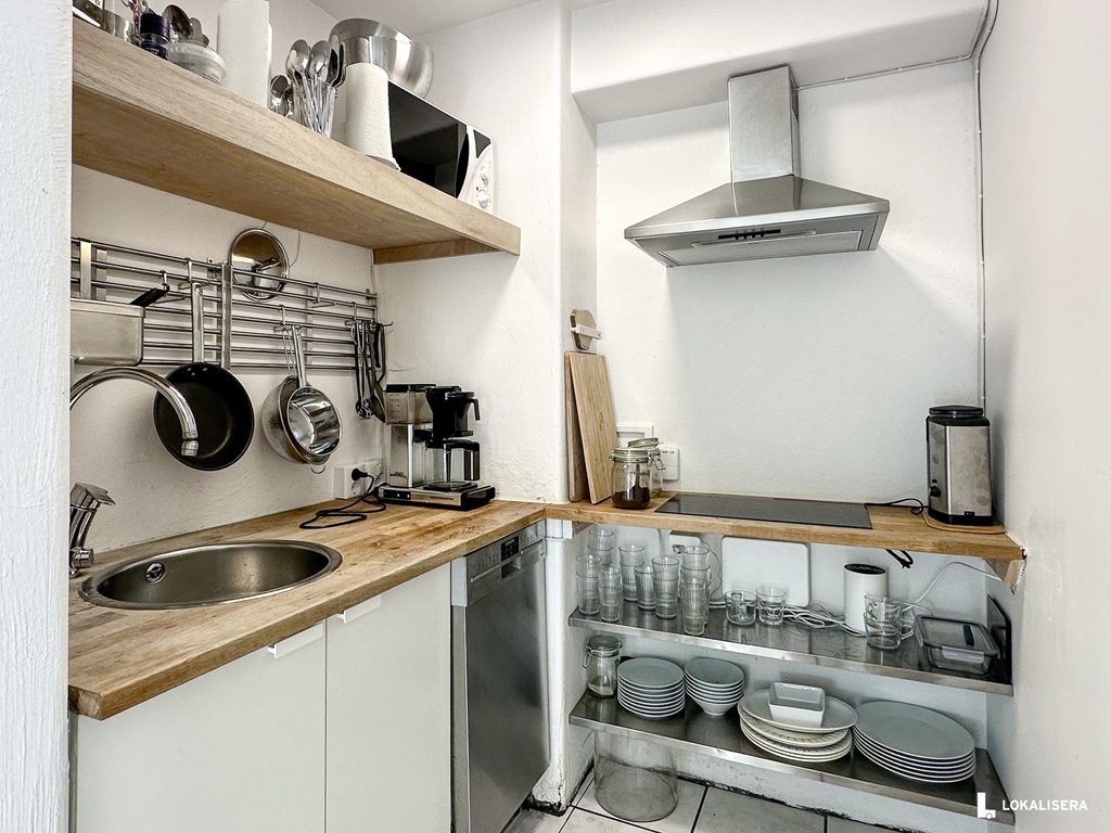 Standarden är enkel men med ljusa ytskikt. Med mindre anpassningar kan lokalen bli mycket trivsam och funktionell till en prisvärd hyra, särskilt med tanke på det centrala läget.