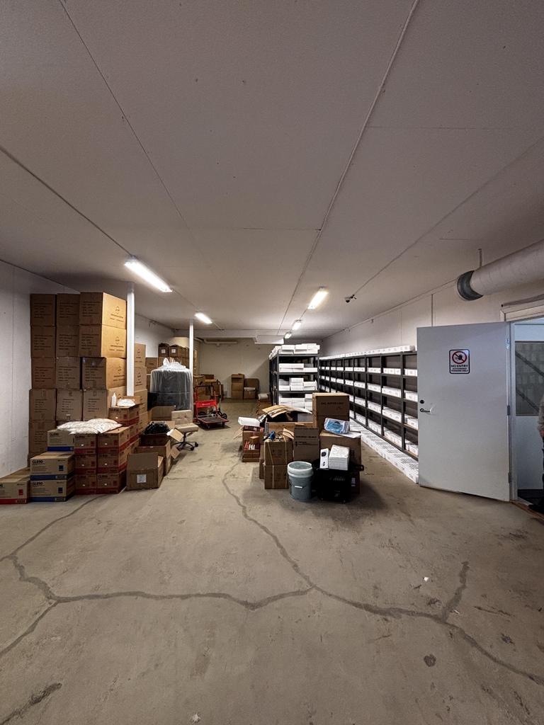 Lokalen om totalt 400 kvm erbjuder optimal lagerhållning med två markportar som går direkt in till lagerdelen. Genom en interntrappa når vi lokalens övre plan där vi finner personalutrymme, wc, pentry samt kontorsrum. I kontorsdelen finns det möjlighet till två kontorsrum och två mötesrum eller tre större kontorsrum och ett mötesrum beroende på hur ert behov ser ut. Det finns även en större öppen yta på övre plan som kan användas som öppet kontorslandskap, showroom, reception etc.