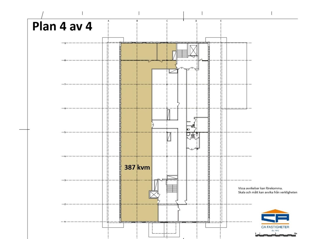 Lokalen är belägen på våning 4 med en sammanhängande yta på totalt ca 387 kvm i denna kombinationsfastighet. Lokalen kan med fördel användas till Enklare industri/Lager i kombination med kontor. Fastigheten har idag en blandning av olika hyresgäster med verksamheter så som småskalig livsmedelstillverkning, lager och mindre el mekanik verksamhet. Lokalerna i fastigheten varierar i storlek allt från 50 kvm upp till 500 kvm. Möjligheter att hyra större ytor så som hela plan finns. Varje plan innefattar ca 1100 kvm och byggnaden har 4 plan utöver bottenplan. I fastigheten finns 2 st. hissar. En personhiss för kontor och personal. En lasthiss som är belägen intill lastzonen på gården. Det finns gott om möjligheter att hyra parkeringsplats på fastigheten mark både utomhus och inomhus.